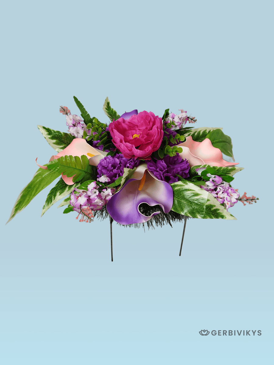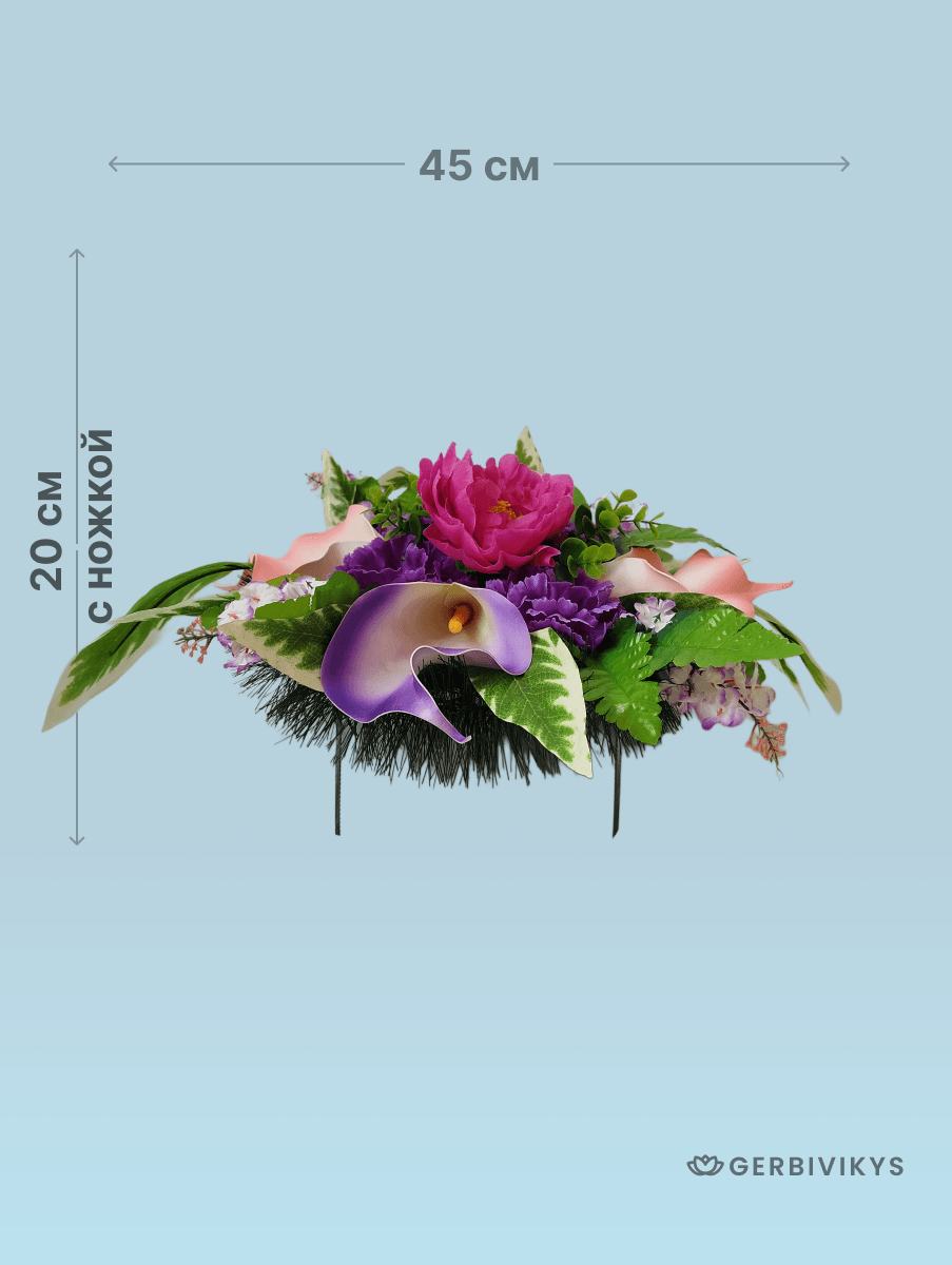 Ритуальная композиция венок на похороны полянка фиолетово-розовая от бренда Gerbivikys – это изысканное и символическое украшение для погребальной церемонии. Наши товары собраны из качественных искусственных цветов, устойчивых к воздействию ультрафиолетового излучения и погодных условий. Мы создаем памятные композиции на кладбище с любовью, вниманием к деталям. Наши изделия долговечны. Композиции от интернет-магазина Гербивикус – это не просто декор на могилу, а важный элемент прощания, который помогает выразить глубокие эмоции и уважение к жизни и памяти любимого человека. Перед отправкой венки проходят контроль качества и дополнительное отпаривание. При необходимости венок на похороны может быть упакован в картонную коробку. Это позволит избежать повреждения венка при транспортировки. А также защитит Ваши руки от острых металлических элементов каркаса венка.