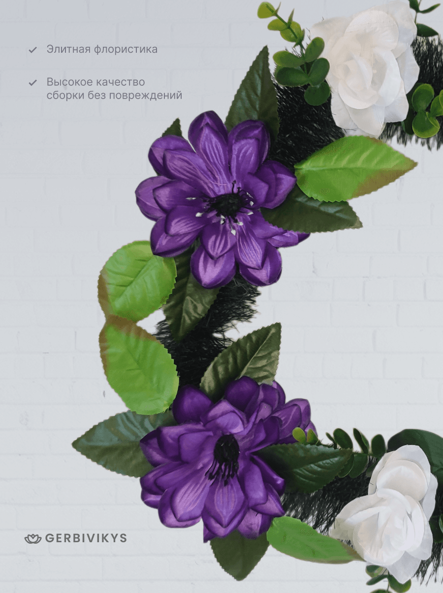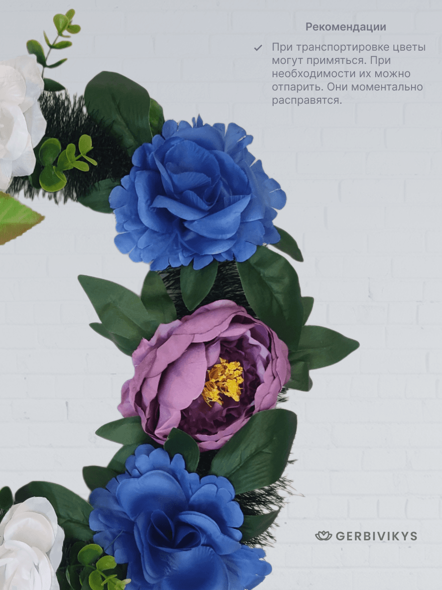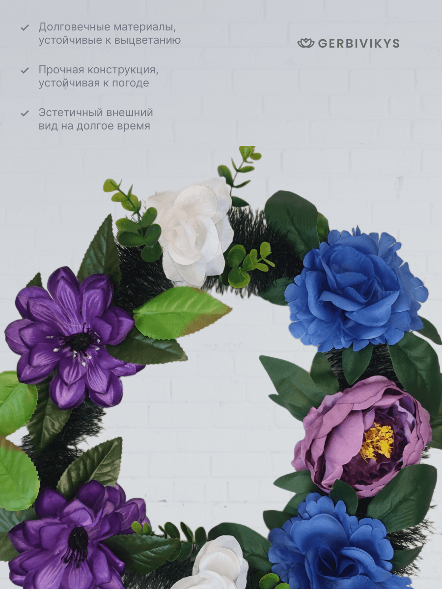 Композиция на кладбище бескаркасная венок на похороны сине-фиолетовый от бренда Gerbivikys – это изысканное и символическое украшение для погребальной церемонии. Наши изделия собраны из качественных искусственных цветов, устойчивых к воздействию ультрафиолетового излучения и погодных условий. Мы создаем памятные композиции с любовью, вниманием к деталям. Наши товары долговечны. Композиции от Гербивикус – это не просто декор на могилу, а важный элемент прощания, который помогает выразить глубокие эмоции и уважение к жизни и памяти любимого человека. Перед отправкой венки проходят контроль качества и дополнительное отпаривание. При необходимости венок на похороны может быть упакован в полиэтиленовый пакет высокой плотности или картонную коробку. Это позволит избежать повреждения венка при транспортировки. А также защитит Ваши руки от острых металлических элементов каркаса венка.