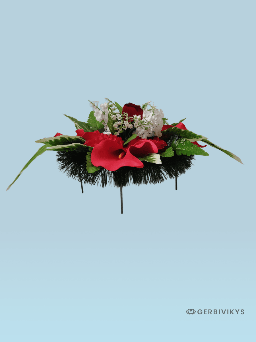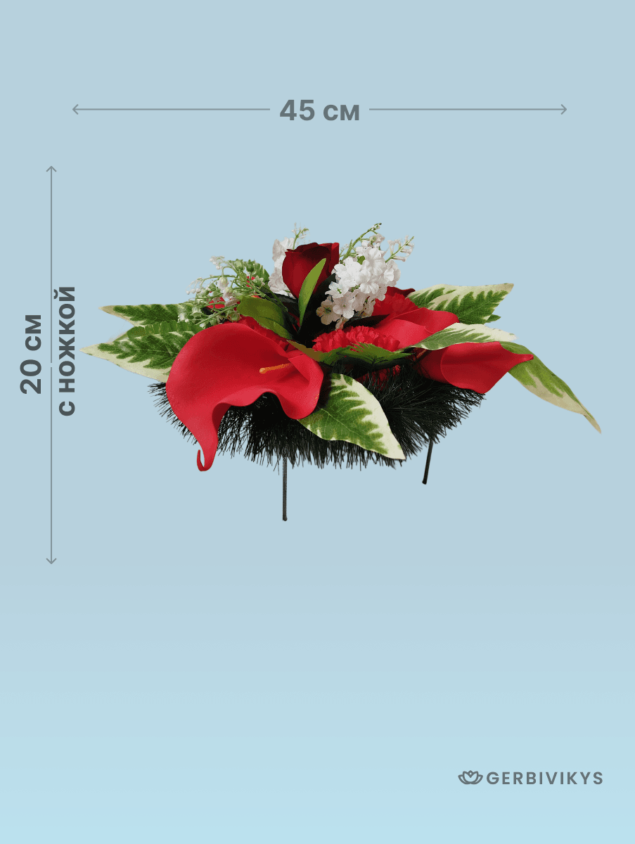 Композиция венок на похороны полянка красная от бренда Gerbivikys – это изысканное и символическое украшение для погребальной церемонии, отражающее уважение и почтение к памяти ушедшего. Наши изделия собраны из качественных искусственных цветов, устойчивых к воздействию ультрафиолетового излучения и погодных условий. Мы создаем памятные композиции с любовью, вниманием к деталям. Наши товары долговечны. Композиция от Gerbivikys – это не просто декор на могилу, а важный элемент прощания, который помогает выразить глубокие эмоции и уважение к жизни и памяти любимого человека. Перед отправкой венки проходят контроль качества и дополнительное отпаривание. При необходимости венок на похороны может быть упакован в картонную коробку. Это позволит избежать повреждения венка при транспортировки. А также защитит Ваши руки от острых металлических элементов каркаса венка.